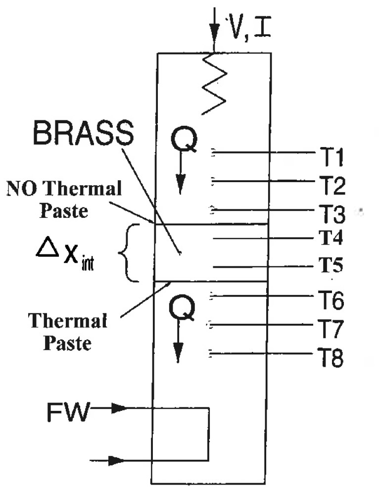 Only apply thermal paste between the cooled face and intermediate brass section. Do not apply thermal paste between the heated section and intermediate section. Do not clamp the assembly together and leave it unclamped throughout the steps 6 through 10.