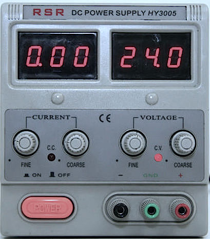 We will be using the RSR HY3005 regulated power supply (user manual), the front panel of which is shown in figure 1.
